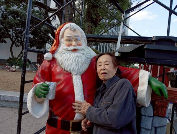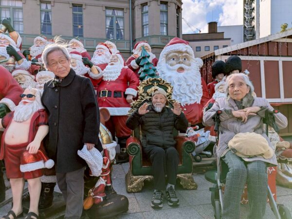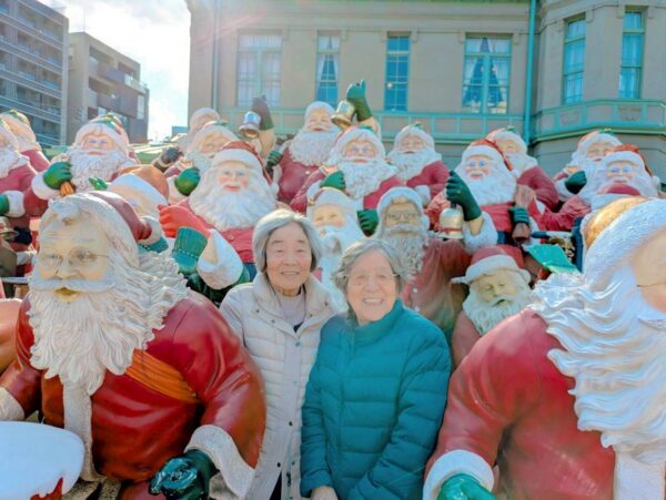 午後からは天神のXmas会場へお出かけ☆沢山のサンタさんに囲まれて色々なサンタさんと記念撮影です。普段のお出かけでは通過するだけの天神ですが今日は違います。