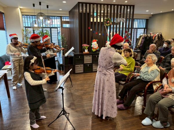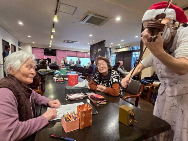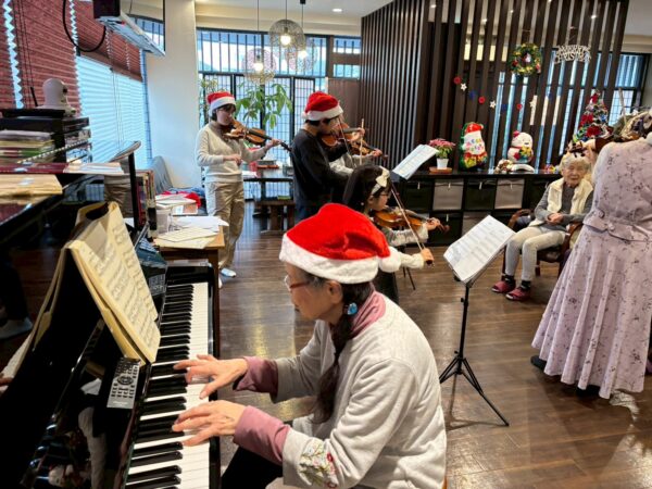 特別なランチメニューを皆で楽しみ、午後はピアノで皆で唄い、第二幕ではヴァイオリンの生演奏!