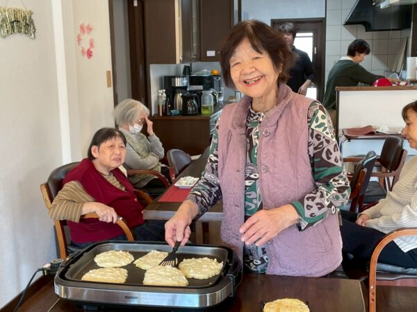 本日の昼食は調理レクでおにぎりとお好み焼きを皆で作って食べました。とっても美味しかったですね。午後からは皆さんと一緒に送迎車を洗車に行きました。