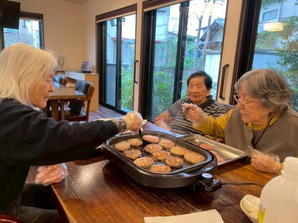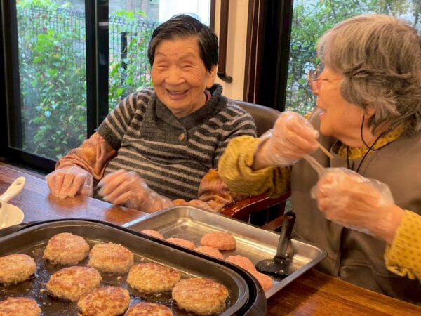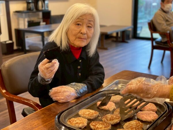 本日の調理レクは、お昼のメニューにあるハンバーグを焼きました!
