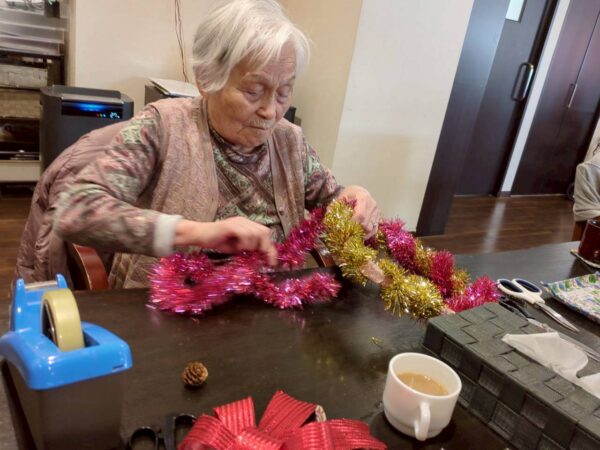 クリスマスリースの製作もしました。