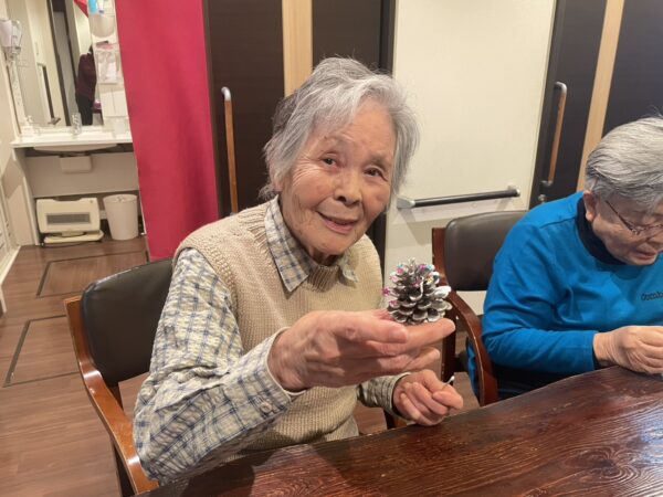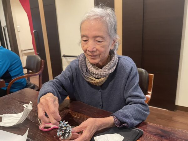 松ぼっくりの色も様々あり、皆様アレンジを加えて進めておりました。
