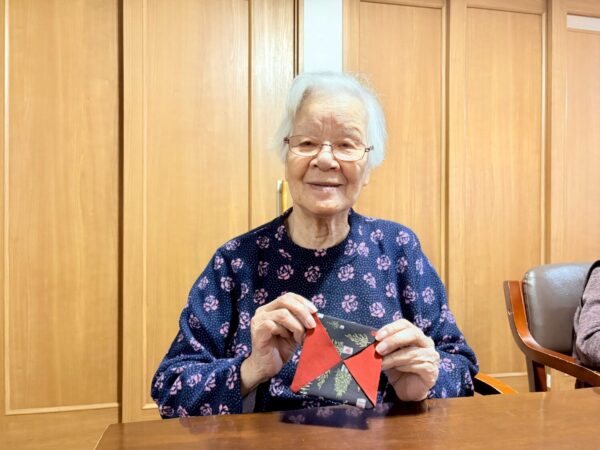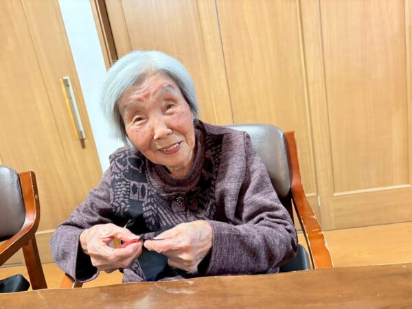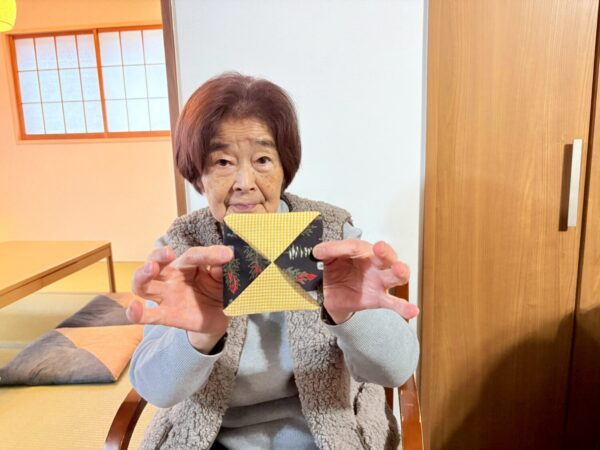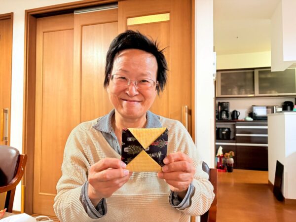 制作活動では、クリスマス柄の生地を使って、コースターを作りました