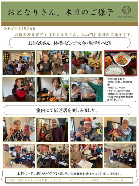 体操の後はビンゴ大会を行いました。ご利用者様が手作りして持ってきてくださいました。
