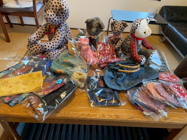 はぎれのクマにハンドバッグに丸いポーチなど様々な景品に皆様大変喜ばれていました。
