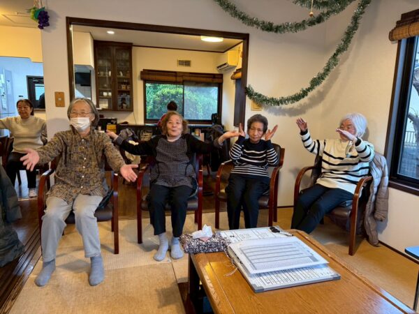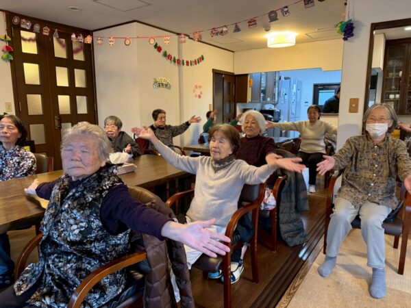 「動くとあったかいね」「わあ手が長い」と皆様一生懸命数を数えながら体操されていました。