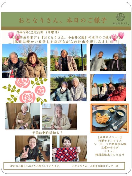 おとなりさん。小金井公園では、太陽のように元気な皆様と活動を楽しんでおります♪