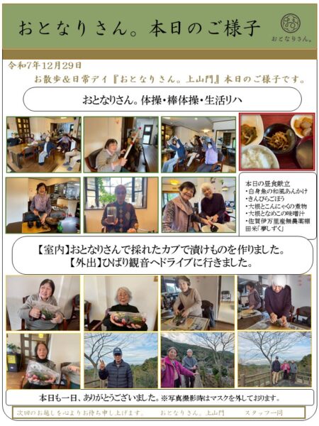 皆様こんにちは。本日も朝から寒い日でしたね。厳しい寒さのなか「おとなりさん。」にご来所頂きありがとうございます。
