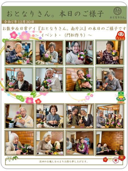 午後からは、イベントで門松作りを致しました。