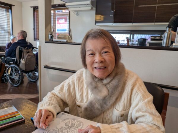 編み物に切り絵、脳トレなど、皆様和気あいあい談笑されながら制作に取り組まれております。