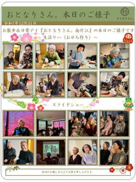 午後からは、おせちの準備と1年を振り返るスライドショーを開催しました。
