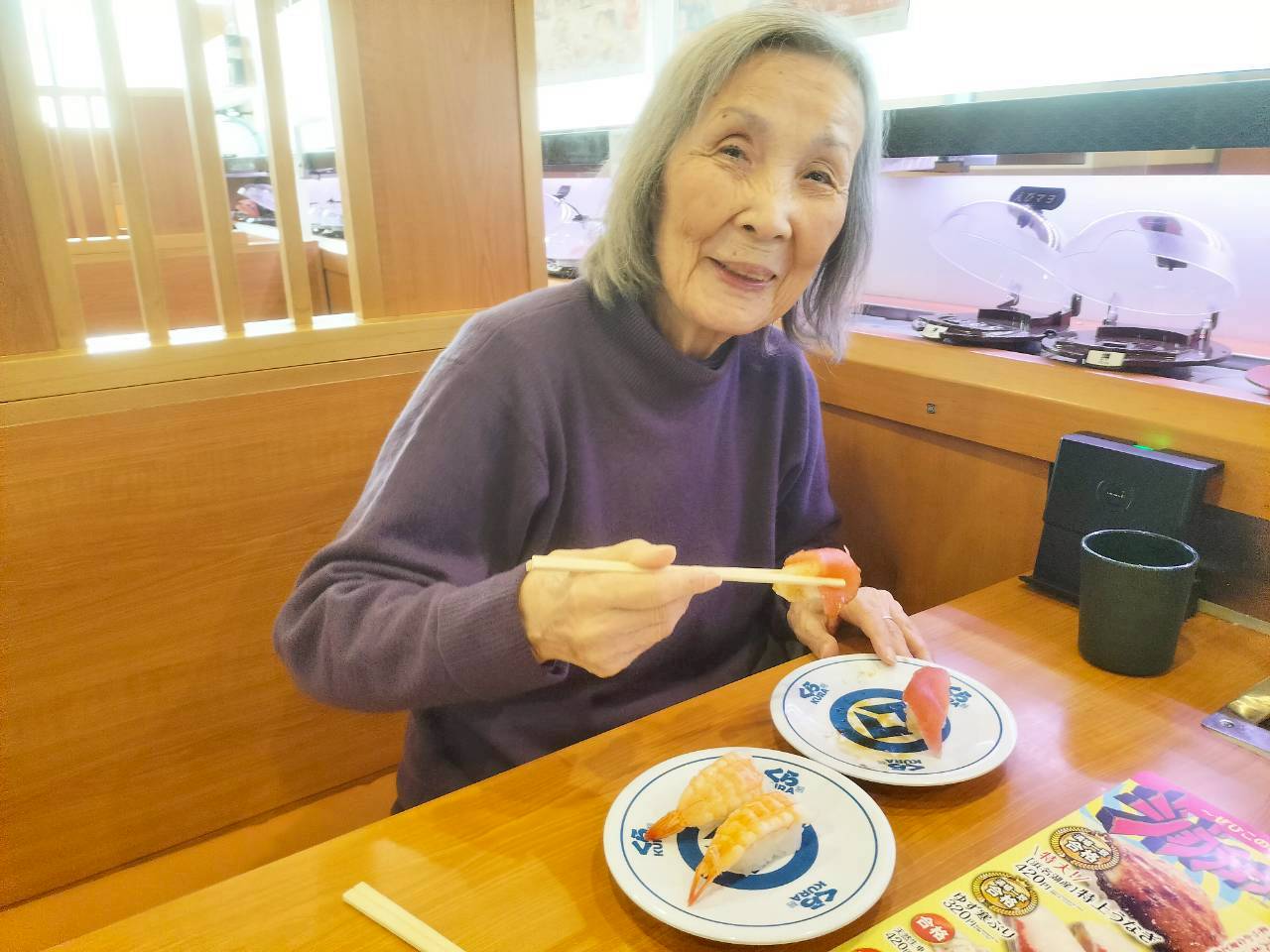 昼食はくら寿司でお好きなお寿司を召し上がっていただきました。