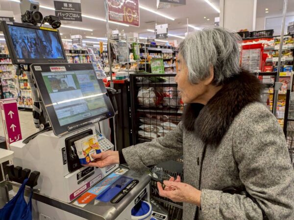 初のセルフレジ機をご自身で頑張って操作しバーコードをかざしてましたね。難しくて苦手なご高齢の方は多いですが、これも機能訓練です。
