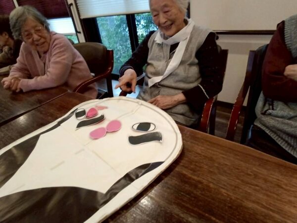 午前中は懐かしのお正月遊びで福笑いを行ない、皆さん可笑しな顔が出来上がり(笑)皆ですると楽しい遊びでした(笑)