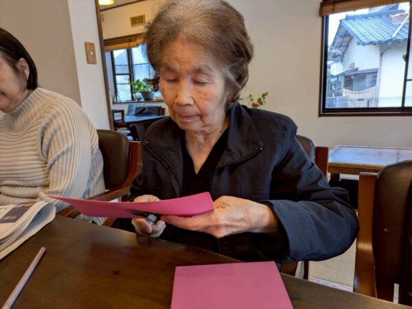 皆様こんにちは。本日は昨日に比べ少しは暖かいように感じましたね。皆様体調はいかがお過ごしでしょうか。本日も「おとなりさん。」に来ていただきありがとうございます。まずは「おとなりさん。体操」からスタートし午前中は制作レクを行いました。
