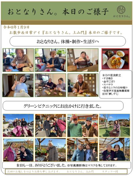 午後はご利用者様のご要望で「グリーンピクニック」へお出掛けしました。