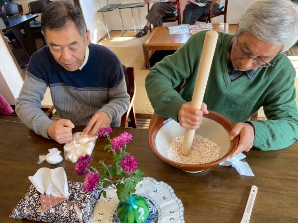 少し肌寒い中、外での温かいお茶は美味しいですね。