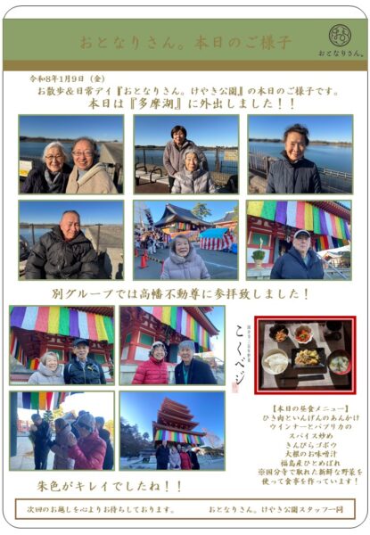 おとなりさん。けやき公園では高幡不動尊へ外出しました!