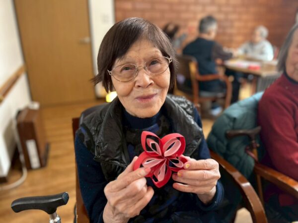 午前中は、梅の花作りをしました。