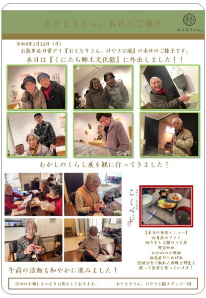 これから寒い日が続きますが、体調くずされないようお気をつけください。本日も一日ありがとうございました。