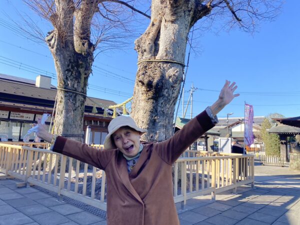 名物、夫婦欅をぐるりと周り、参拝を終えると、大きな山車や太鼓を見物。