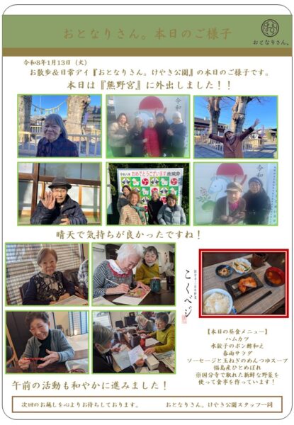 寒い日も水分補給を細目に行いお過ごしくださいね。