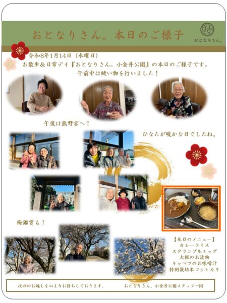 本日のおとなりさん。小金井公園は熊野宮、梅鑑賞にお出かけしました。