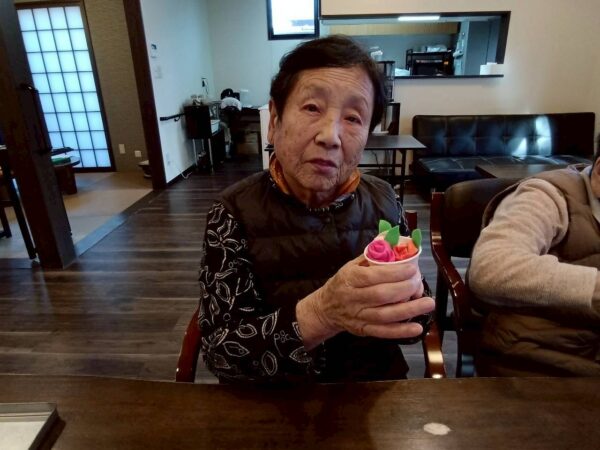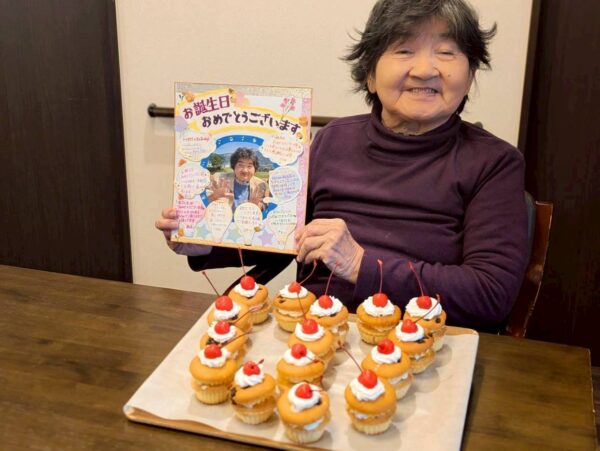 暖かい午後の時間を皆さん楽しく気持ちよく活動して過ごされました。事業所に戻り1月生まれのご利用者様の誕生会をしました。手作りの誕生日ケーキとスタッフからのメッセージ色紙をプレゼントです。そして皆でお祝いの歌を唄いました。おめでとうございます。
