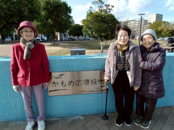 午後からのお出かけでは中央区港のかもめ広場へ。そしてお出かけはされなかった皆さまは近所をお散歩して200mほど歩いて良い歩行訓練となりました。