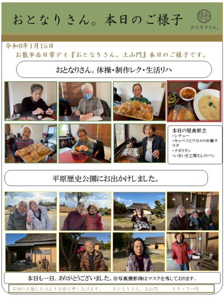 今日は肌寒く空模様もすっきりしない一日となりました。それでもおとなりさん。上山門は皆さん元気に活動されていました。