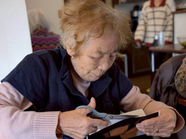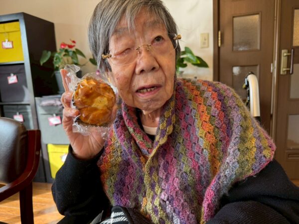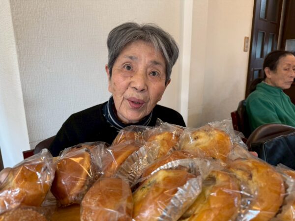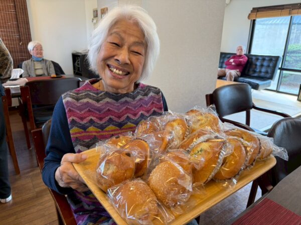 午前のレクではつるし飾り作りに集中して皆さん器用に作られていました。本日は皆さんお楽しみの月に一度のパンの日でした。