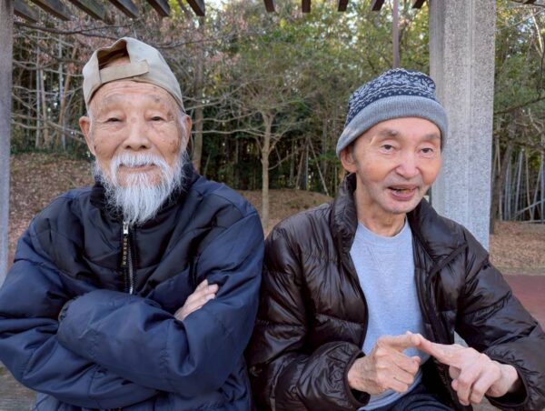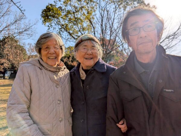 冬晴れ間 景色を眺め 歩行訓練