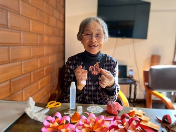 午前中は、梅の花作りをしました。