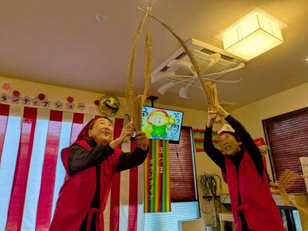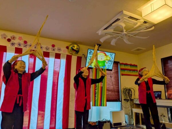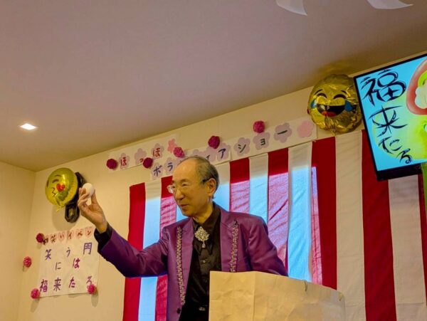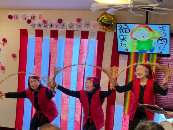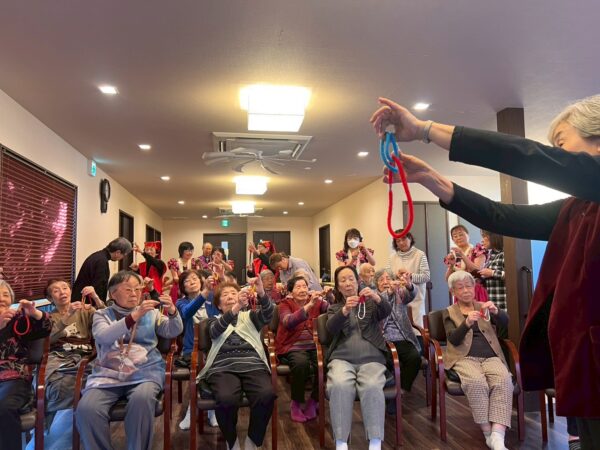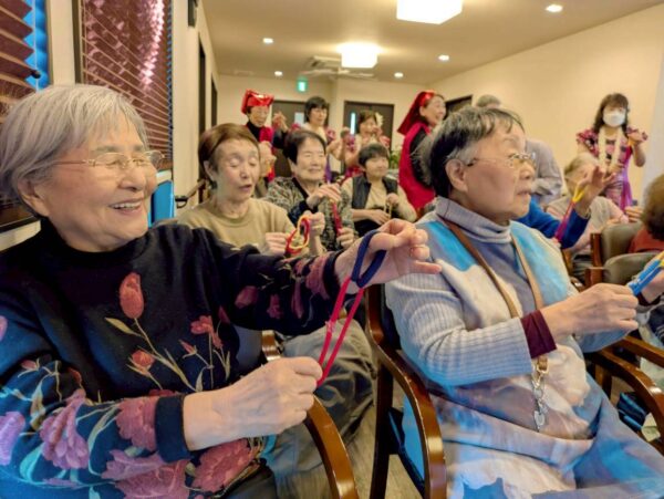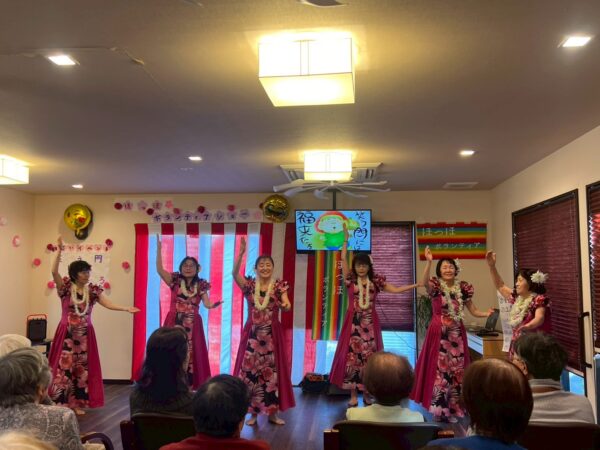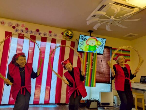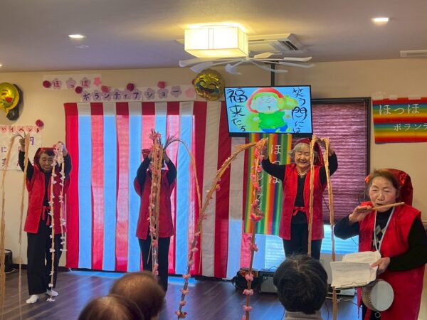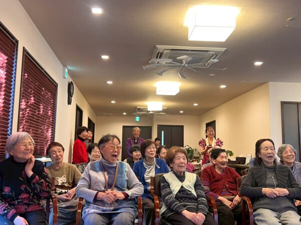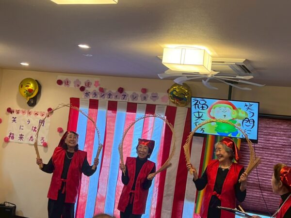 今日は初笑いイベント「笑う門には福来る」を開催致しました。ほっほボランティアさんのショーを楽しみました。手品にフラ、南京玉すだれなど盛り沢山の内容で皆さん終始笑顔でしたね。