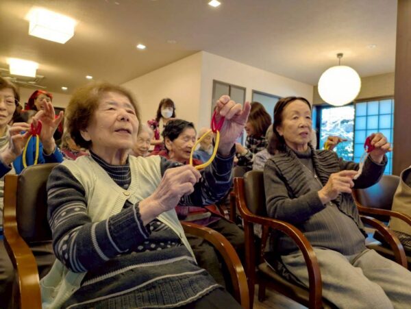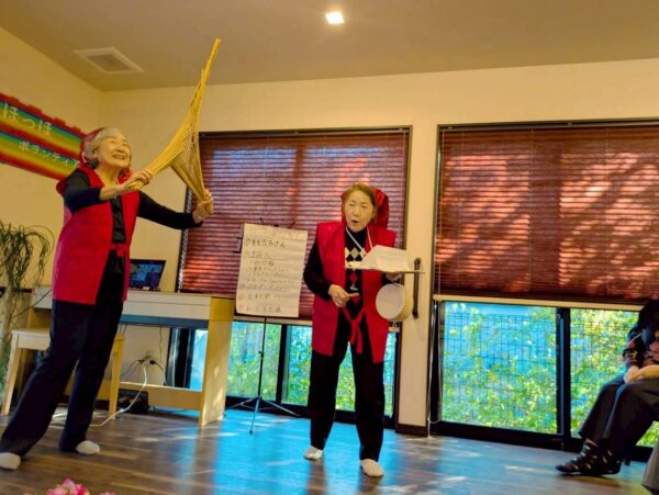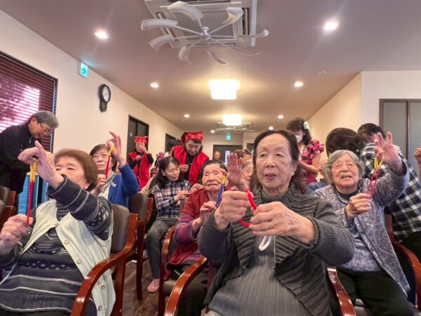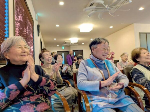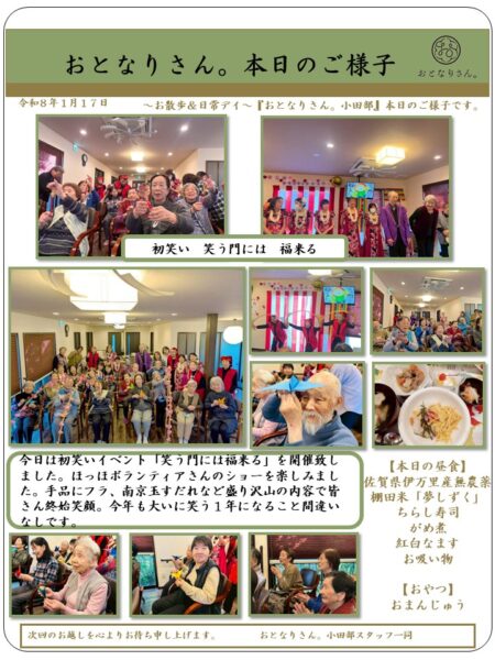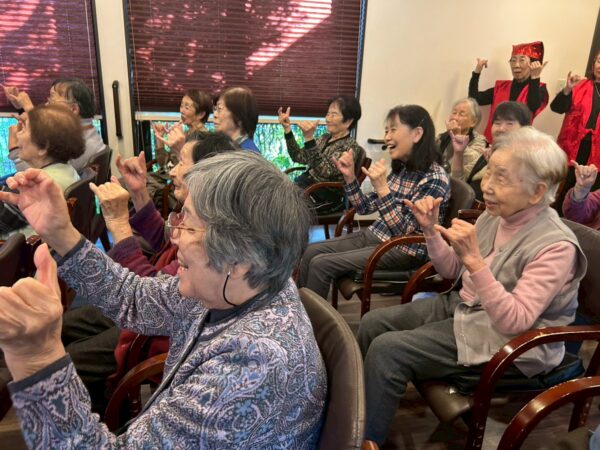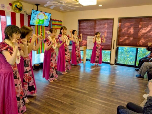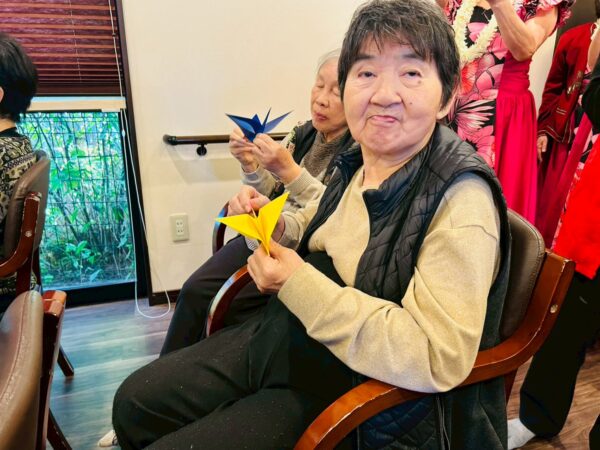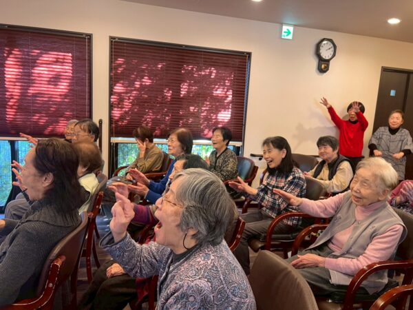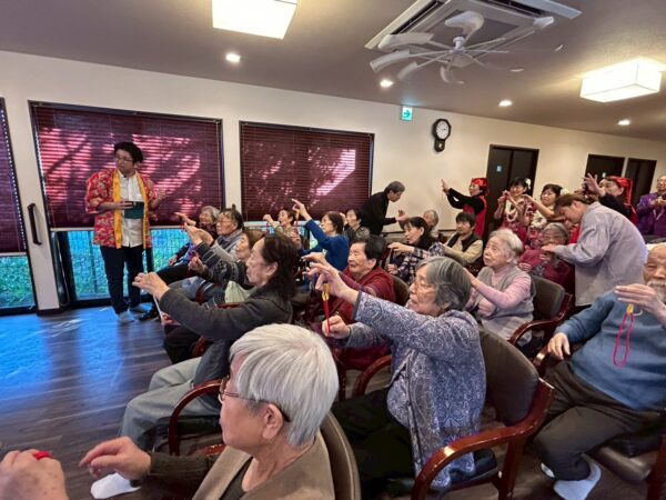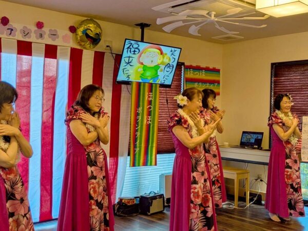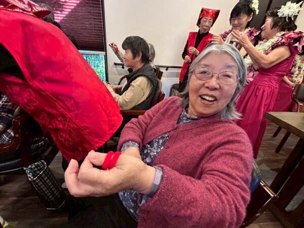 今日は初笑いイベント「笑う門には福来る」を開催致しました。ほっほボランティアさんのショーを楽しみました。手品にフラ、南京玉すだれなど盛り沢山の内容で皆さん終始笑顔でしたね。