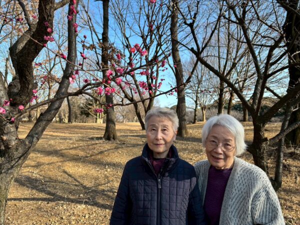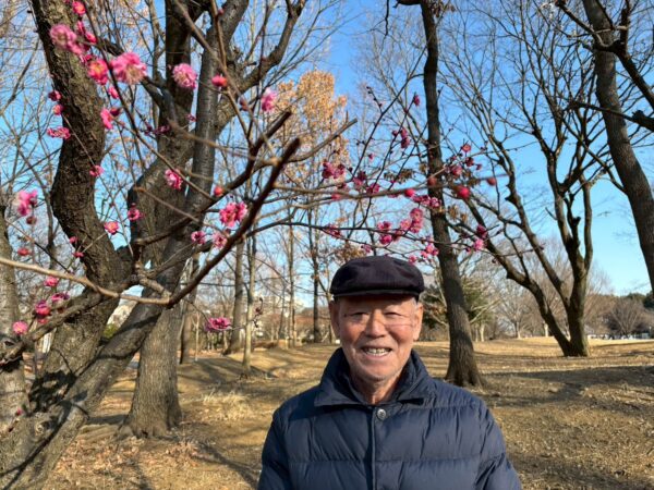 公園の奥には紅梅が咲き始め、東屋で休憩、あたたかいお茶でほっと一息です。