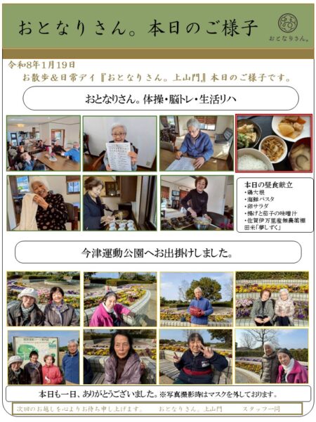 皆様こんにちは。本日は暖かく過ごしやすい日でしたね。皆様本日も元気にご来所されています。