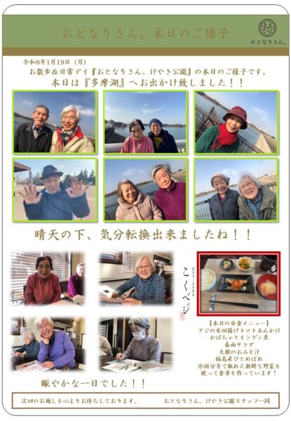 おとなりさん。けやき公園では、1月の割には気温も上がり散歩日和でしたので、少し足を伸ばして多摩湖に外出しました。