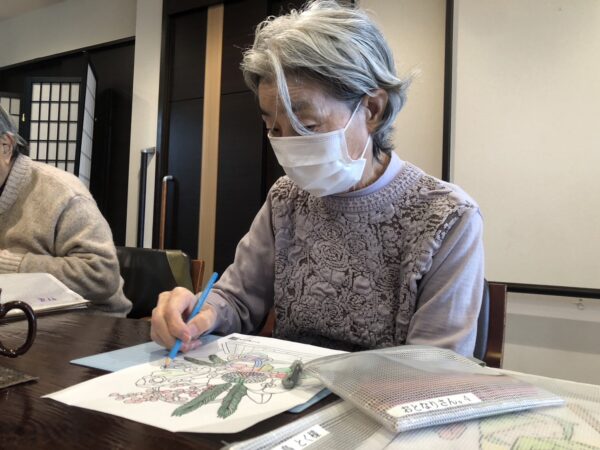 室内の活動は切り絵、編み物、脳トレなどの趣味活動を行いました。色々と完成を楽しみにしながら進めていきましょう。