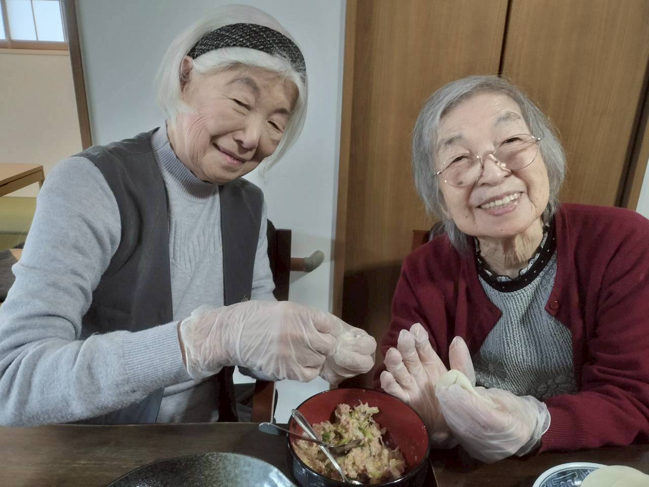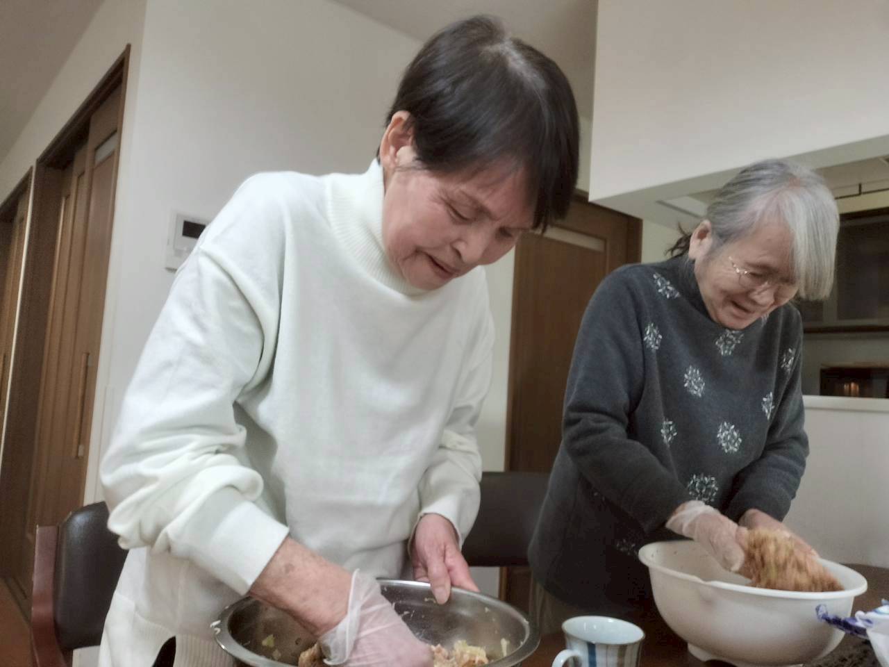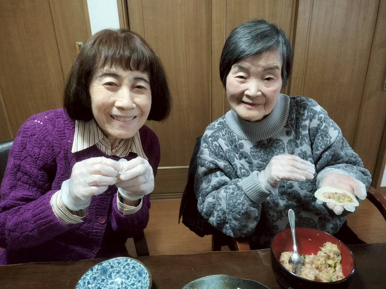 手際よく 餃子包みを 楽しんで