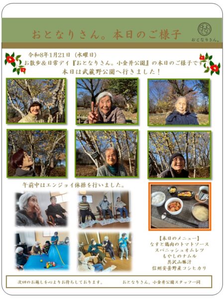 蠟梅など花のいい香りも楽しみながら、元気よくお散歩しました!