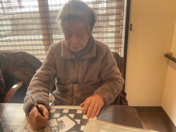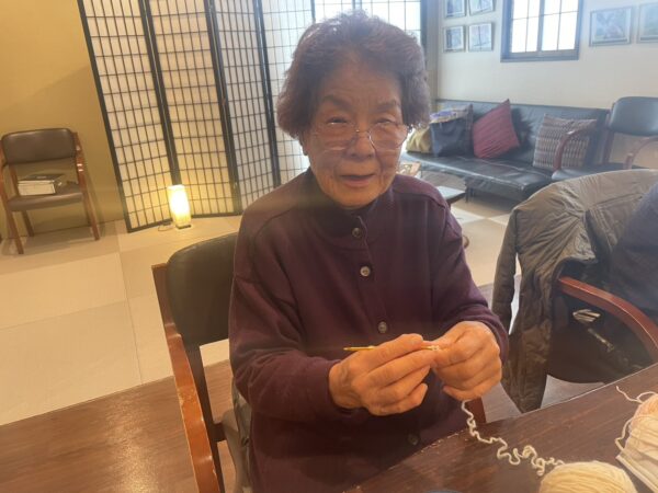 午前中は編み物、脳トレ、編み物、切り絵をしました。