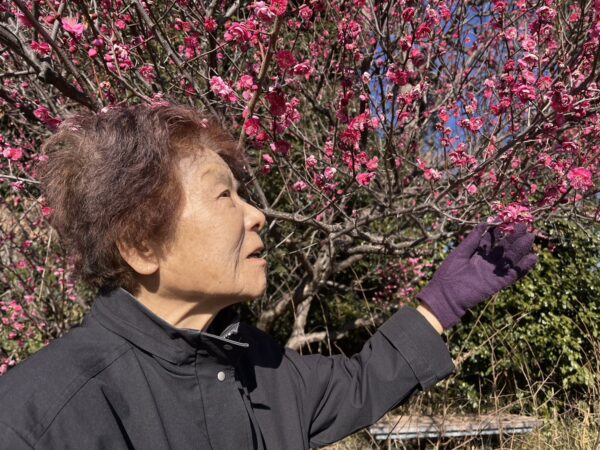 本日は館内には入らず、紅梅が見頃だったのでテラスで梅を見て楽しみました。