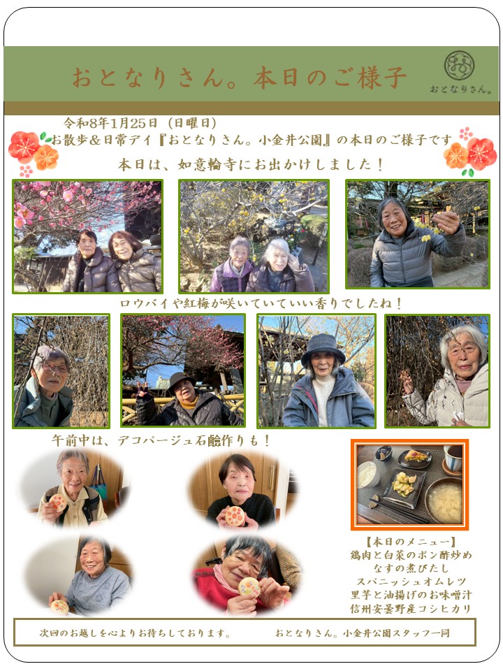 紅梅や蝋梅が咲いていて、いい香漂っていましたね。まだ寒いですが春が近づいています。