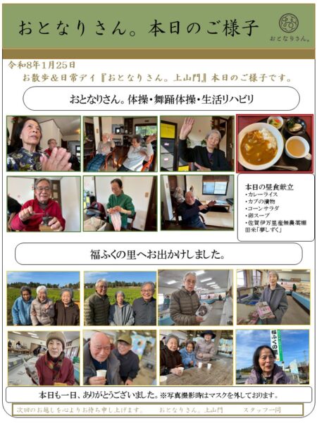 今日もおとなりさん。上山門ではご利用者様の機能訓練に勤しみました。