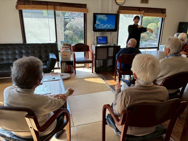 スタッフの舞踊とかけ声で、皆様も歌に合わせて踊って頂き身体をほぐして楽しんでいただきました。