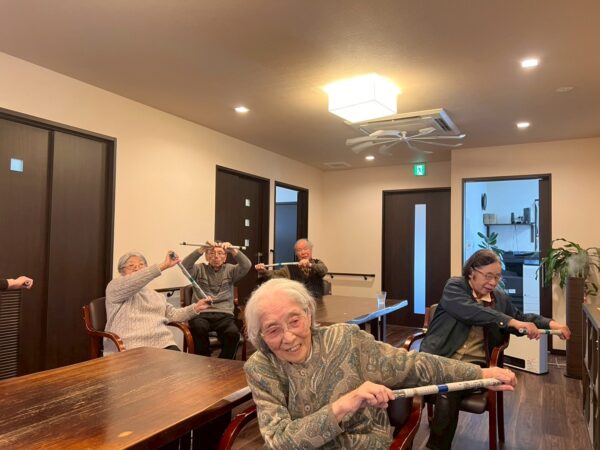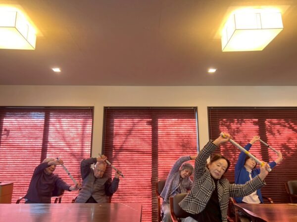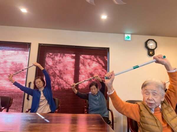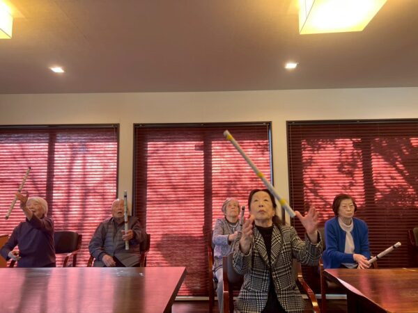 午前中は、寒かったこともあり棒体操でしっかりと身体を動かしました!