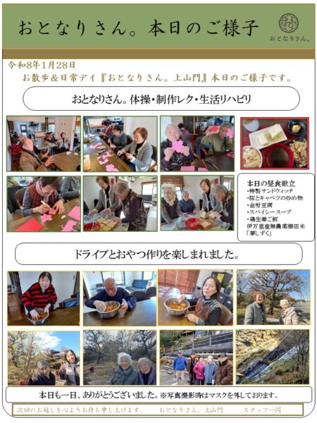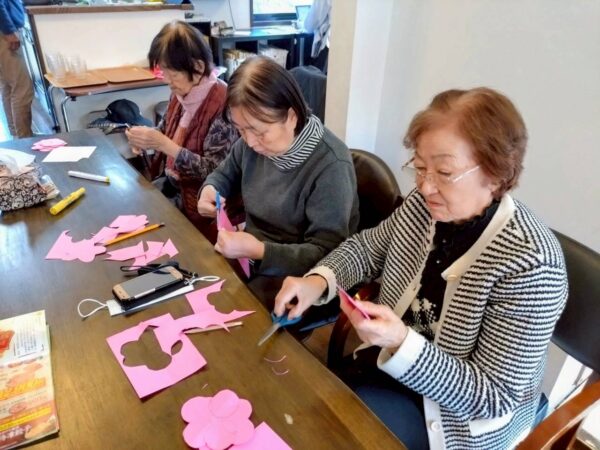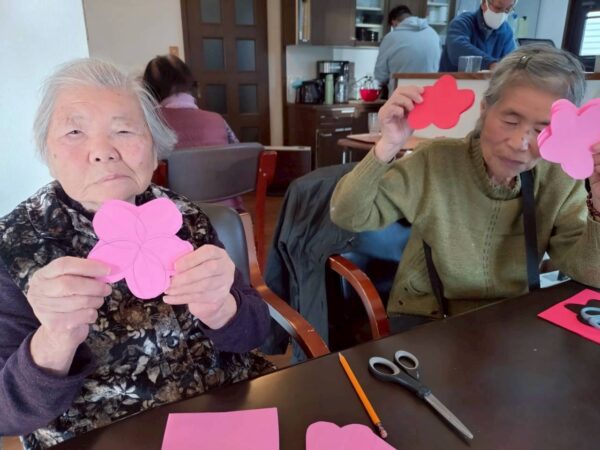 皆様こんにちは。今日はお天気でしたが寒い一日でした。おとなりさん。上山門では、皆で体操を行った後に節分に向けて梅の飾り作りをしました。