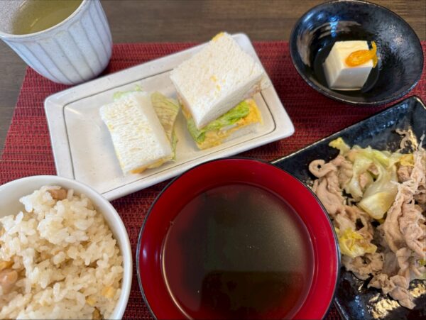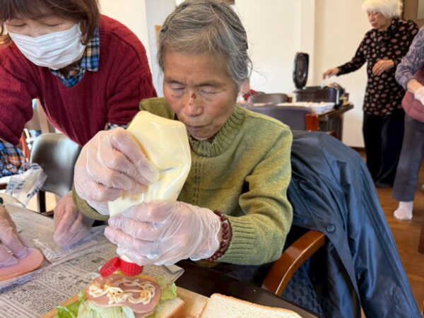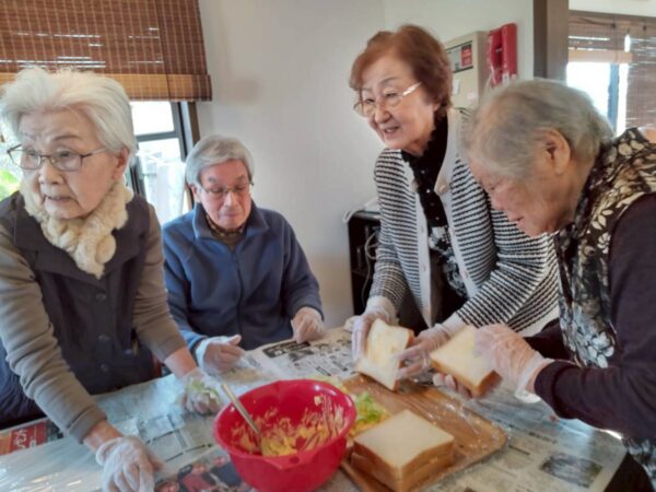 皆の力でお部屋が華やかになるでしょうね。今日は昼食に皆でサンドウィッチを作りました。