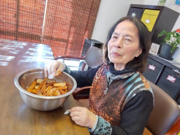 食卓が華やぎ、皆さん自分たちで作ったから尚更美味しいよねと仰られていました。また作りましょうね。午後からはドライブ組とおやつ作り組に分かれて活動しました。